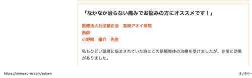 ダイレクトステルスマーケティングという造語 整体院の広告における医師の推薦文 医師、小野間優介氏による推薦文 小野間 優介氏はKINMAQ整体院チェーン本部の取締役である。 KINMAQ整体院の広告はダイレクトステルスマーケティングである。 広告出演者は信…