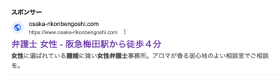 - 亀石弁護士が事業者のウェブサイトへのアクセスの価値を知っていること(自分の事務所に関し、広告料を支払って検索連動型広告に出稿していること。)